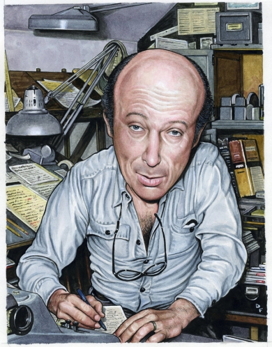 Harvey Kurtzman (1924-1993), portrayed at right by Drew Friedman, was one of the legends of comic books (as artist, editor, and writer). Though his projects were sporadic and his involvement often short-lived, Kurtzman's influence on the genre of comic book art was immense and has been universally acknowledged by everyone from Robert Crumb to the cast of Monty Python. Art Spiegelman said that "Harvey Kurtzman has been the single most significant influence on a couple of generations of comic artists."In 1952 Kurtzman founded MAD (as a comic book; he later turned it into magazine), and staffed it with iconoclastic visual satirists such Will Elder and Wally Wood. (See Drew's portraits of Elder, Wood, and Al Jaffee, also available as limited edition fine art prints.) He later founded several brilliant satirical periodicals (Trump, Humbug, and Help!), and for 26 years, in collaboration with Elder, produced the lushly painted comic strip Little Annie Fanny for Playboy.